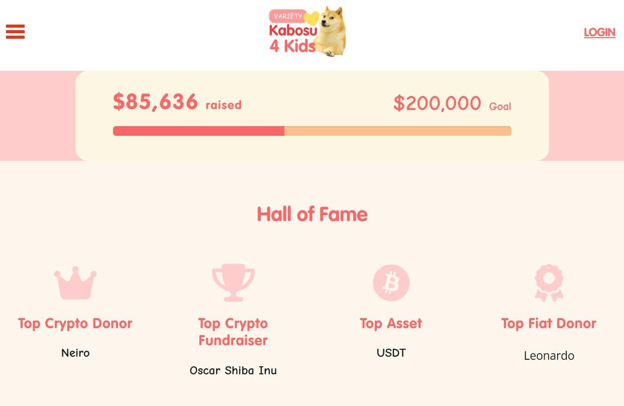 Kabosu 4 Kids Top Crypto Fundraiser